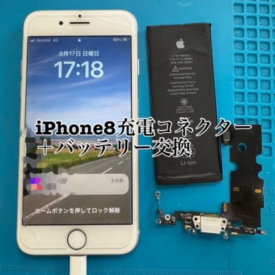 iPhone12充電コネクター+エラー表示なしバッテリー交換60分。
