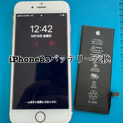 現役でご利用のiPhone6s「バッテリー持ちが悪く不便。機種変更も考えたが電話出来れば良い」とご来店。