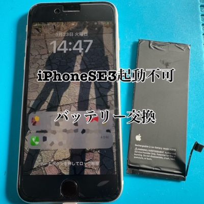 強制再起動を試しても改善しませんので、その場で新しいバッテリーの仮付け。