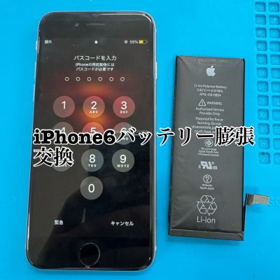 音楽ぷれとして利用「バッテリー膨張して画面が膨らんできた」と修理依頼です。
