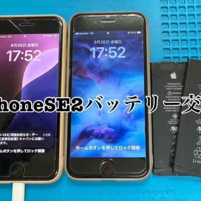 「バッテリー持ちが悪く、最大容量も73%になっている」とご夫婦で交換依頼です。