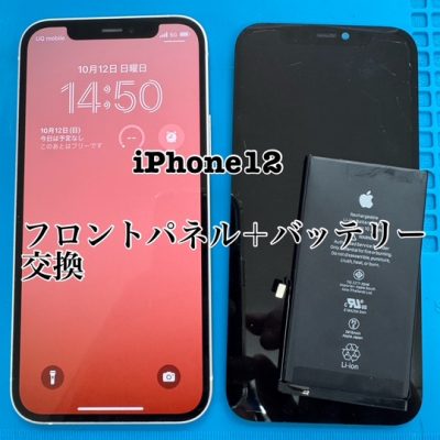iPhone12フロントパネル+バッテリー交換40分。