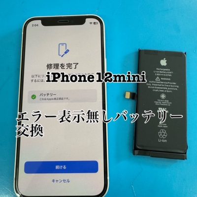 iPhone12miniエラー表示無しバッテリー交換40分。