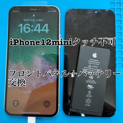 iPhone12miniフロントパネル+バッテリー交換40分。