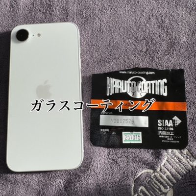 新品のiPhoneへの機種変更も可能ですが、当店で別なお客様より買取りしました16eがありましたので、購入+ガラスコーティング施工。