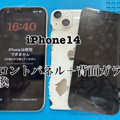 iPhone14フロントパネル+背面パネル交換60分。