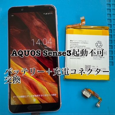 AQUOS sense3充電コネクター+バッテリー交換90分。