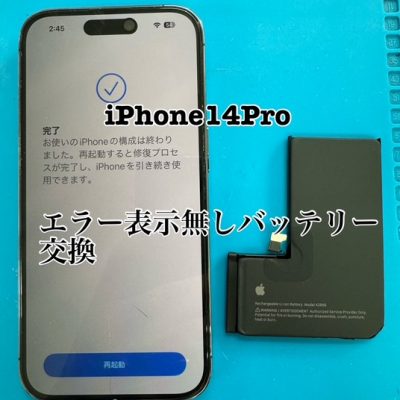 iPhone14Proエラー表示無しバッテリー交換40分。