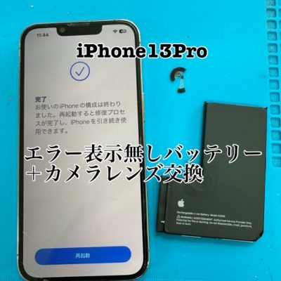 iPhone13Proエラー表示無しバッテリー+カメラレンズ交換60分。