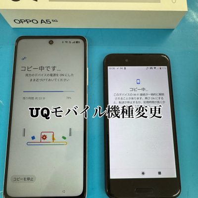 最新機種のOPPO A5への機種変更+データ移行の対応となりました。