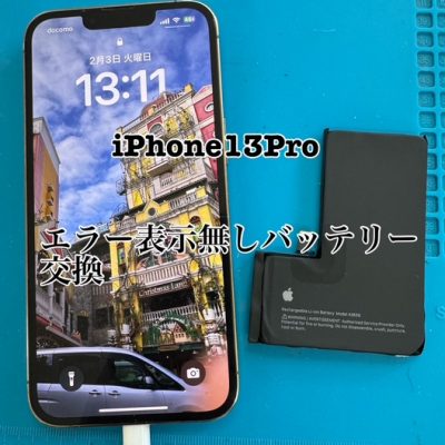 iPhone13Proエラー表示無しバッテリー交換40分。