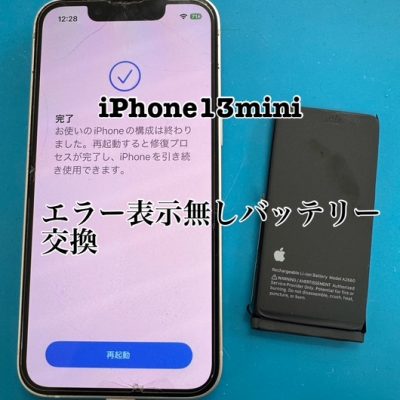 iPhone13miniエラー表示無しバッテリー交換40分。