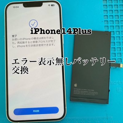 iPhone14Plusエラー表示無しバッテリー交換40分。
