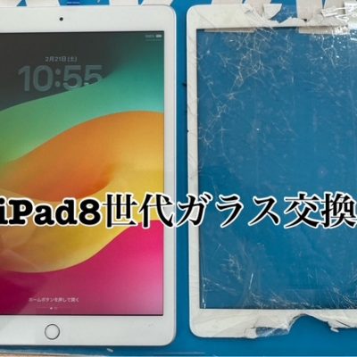 店舗用として利用のiPad8世代「ガラスが割れてしまった」と修理依頼です。