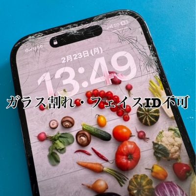 写真はiPhone14Proガラス割れ、フェイスID不可